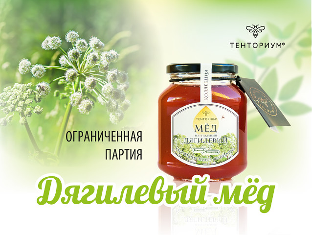 Ограниченная партия редкого и элитного дягилевого мёда поступила в продажу. Нектар для него был собран северными породами пчёл, которые обитают на Западно-Сибирской равнине в юго-восточной её части. Знатоки и ценители «живой» еды могут вспомнить с десяток разных сортов мёда: гречишный, подсолнечниковый, липовый, клеверный, акациевый, бортевой,  падевый, цветочный и мёд с разнотравья… Но, даже среди этих «медовых» гурманов мало кому довелось пробовать удивительный с насыщенными карамельными нотками дягилевый мёд. Благодаря «Тенториум» у вас теперь появилась такая редкая возможность! Побалуйте себя и своих близких ни с чем несравнимым лакомством – мёдом, который пчелы собрали с лекарственного дягиля.